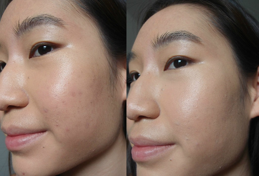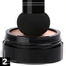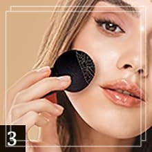 Usa la esponja tipo hongo pequeña y presiona suavemente la cantidad adecuada de producto de manera uniforme en el rostro
