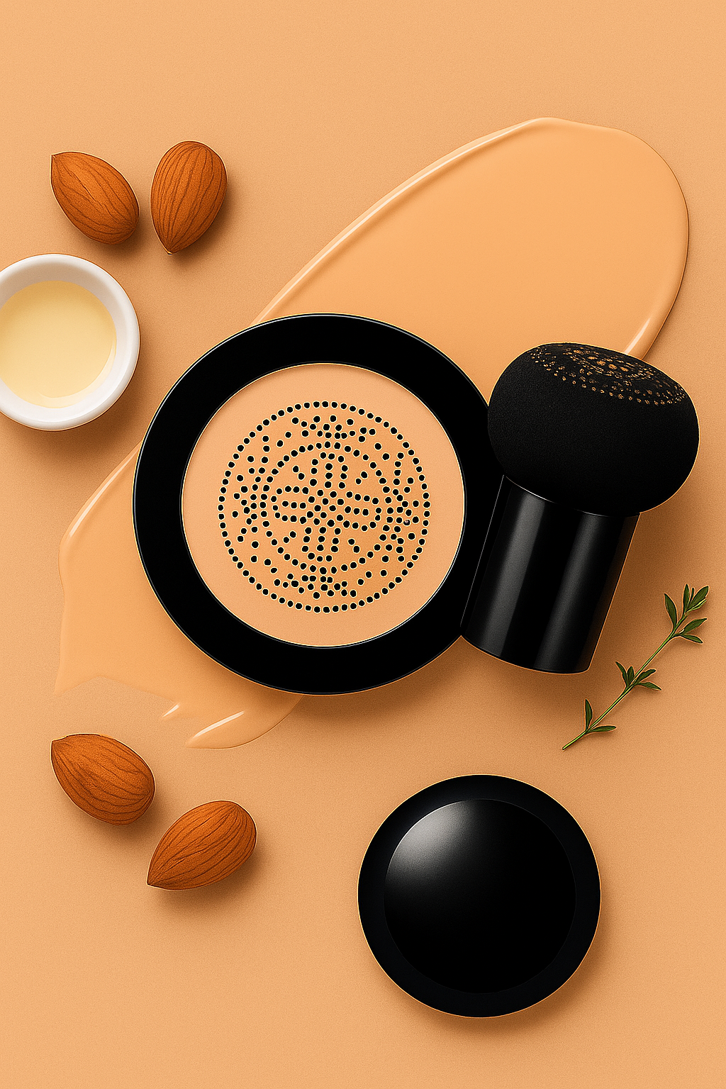 Basta con presionar la esponja en forma de seta sobre la almohadilla para recoger el producto y, a continuación, aplicarlo suavemente sobre la piel. La esponja elástica garantiza una aplicación suave y uniforme, sin necesidad de brochas ni difuminadores.