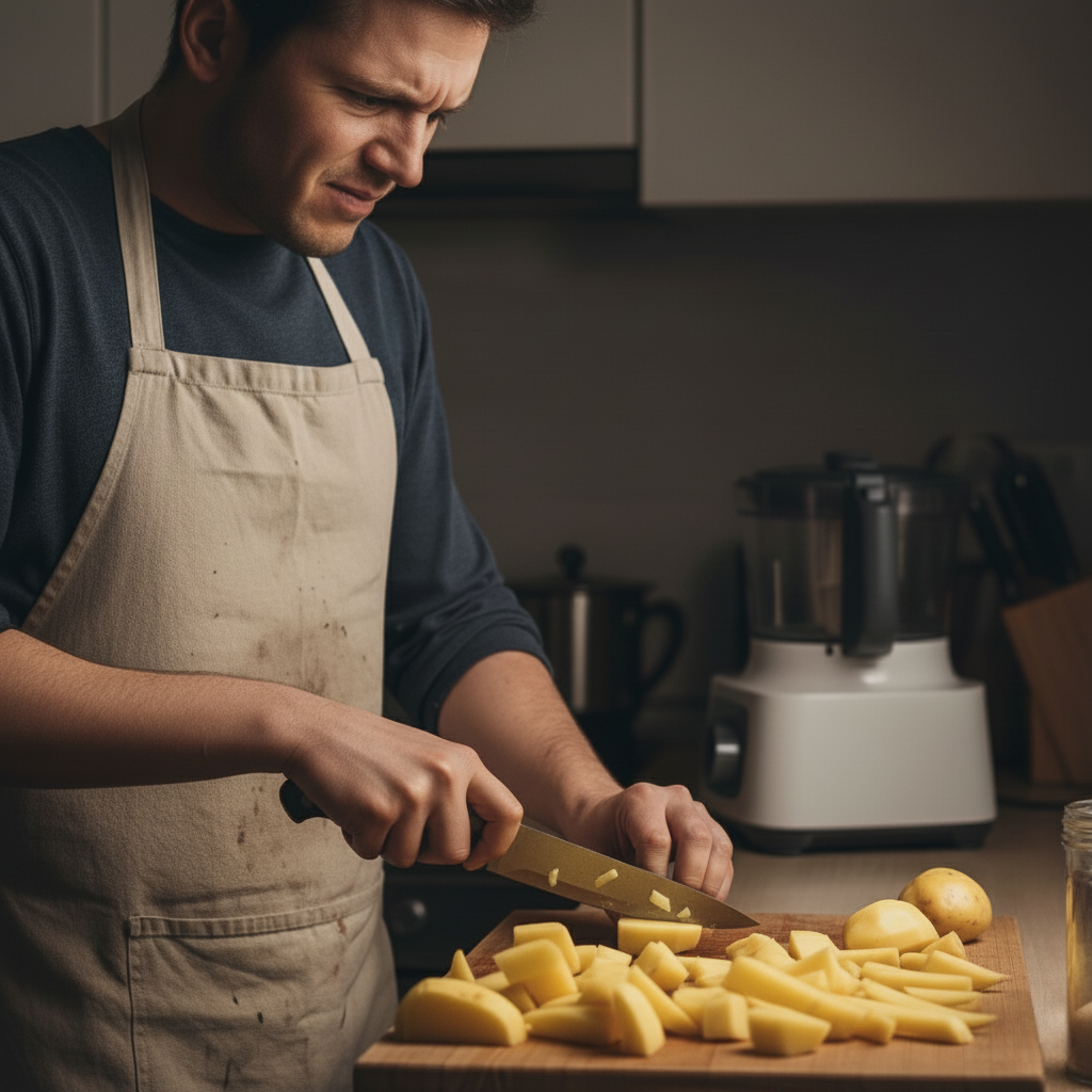 Antes me daba pavor cortar verduras porque siempre terminaba con cortes desiguales, o peor aún, con pequeños cortes de cuchillo. Cocinar me resultaba más estresante que relajante. Desde que tengo este cortador de verduras, cortar se siente fácil y completamente seguro. ¡Por fin puedo volver a disfrutar de la preparación de comidas!