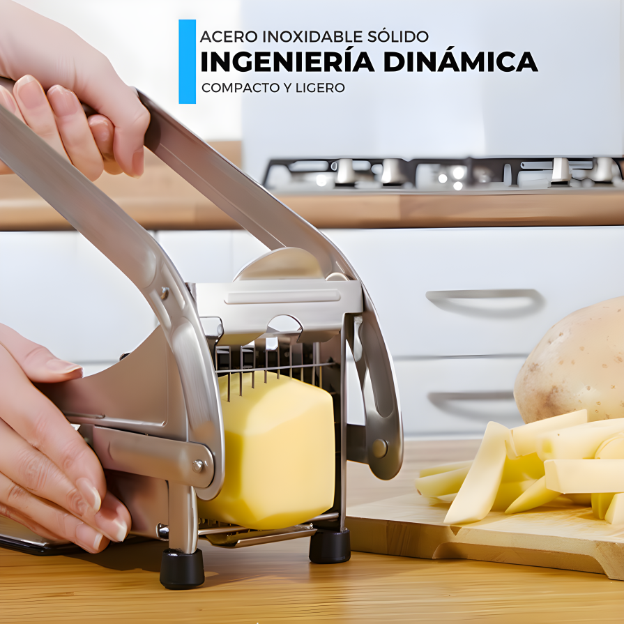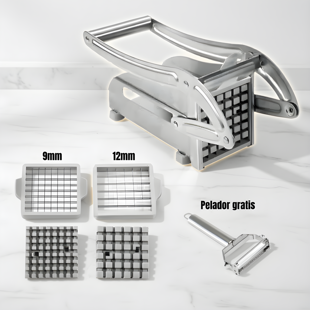Sí, incluye cuchillas dobles intercambiables (9 mm y 12 mm) para que puedas elegir el grosor de corte que prefieras. Perfecto para papas fritas, palitos de verduras o rebanadas de ensalada.