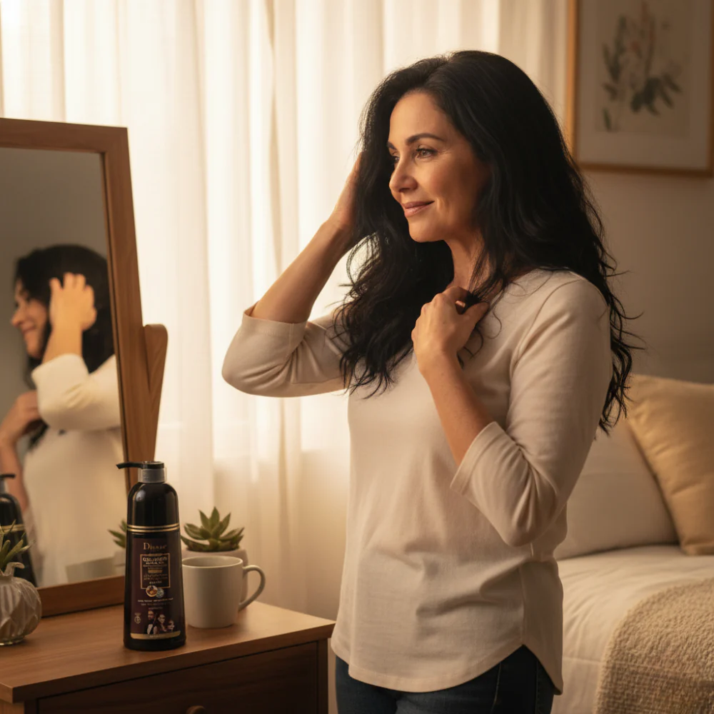 Con Disaar, tu color negro natural vuelve sin esfuerzo, devolviéndote esa energía de “hoy me veo bien” — no porque te escondas, sino porque brillás.