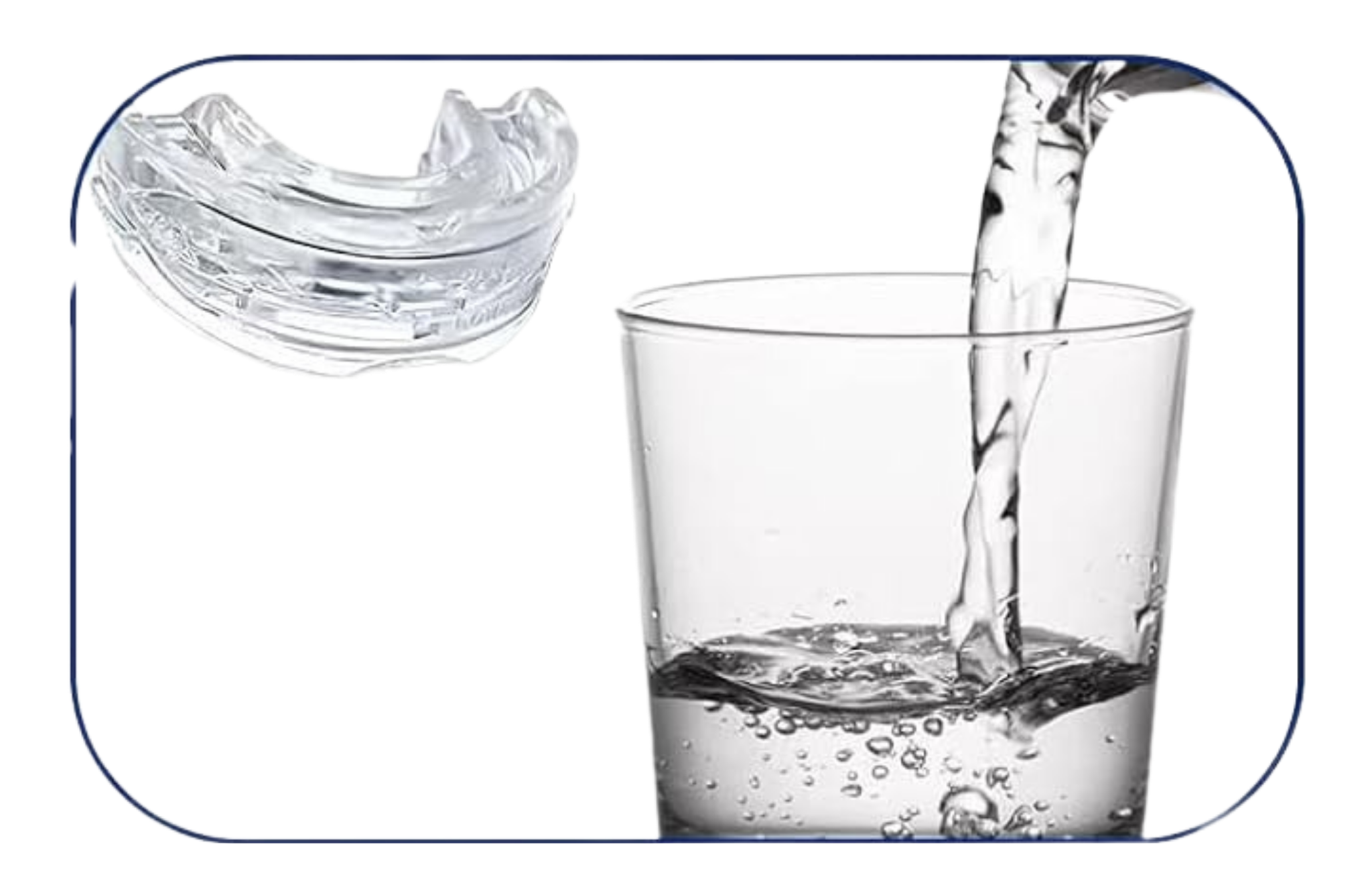 Agrega agua hirviendo en un vaso o bol, coloca el dispositivo antironquidos en el agua durante unos 25 segundos.