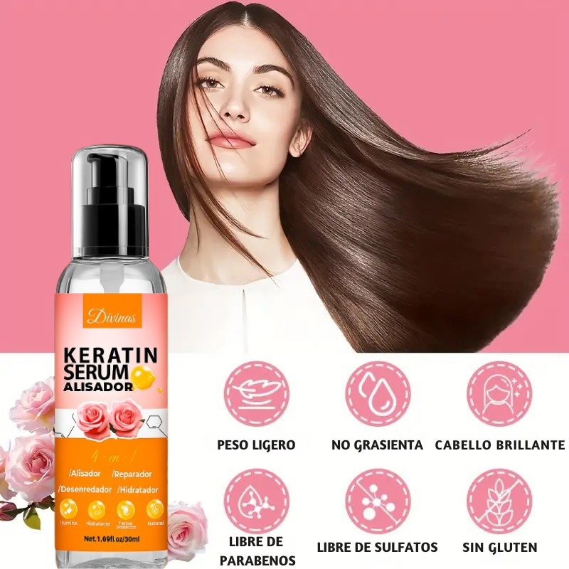 ¿El secreto? Nuestro sérum capilar 4 en 1 con proteína de queratina.
