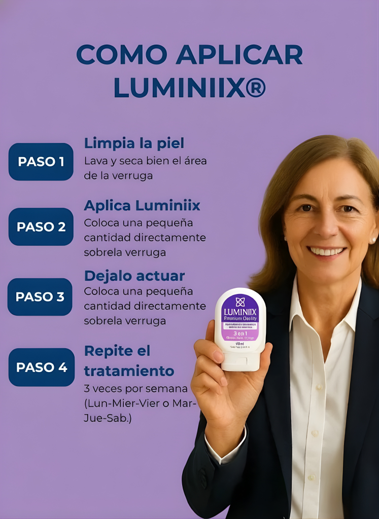 Sí, Luminiix es totalmente seguro para aplicarse en distintas zonas del cuerpo como el cuello, manos, piernas, espalda e incluso el rostro. Sin embargo, se recomienda evitar las áreas cercanas a los ojos, labios o membranas mucosas. Su fórmula natural y suave lo hace ideal incluso para pieles sensibles.