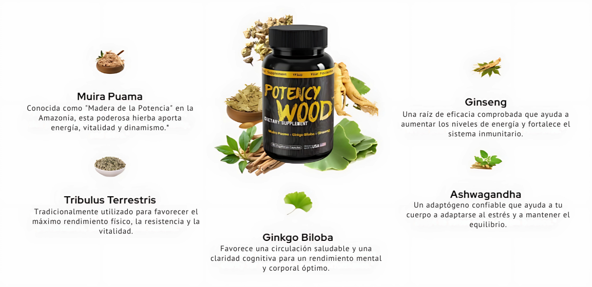 Olvídate de las soluciones rápidas y los potenciadores sintéticos. Potency Wood combina la sabiduría herbal ancestral con una fórmula moderna para que tu cuerpo rinda al máximo, de forma natural.