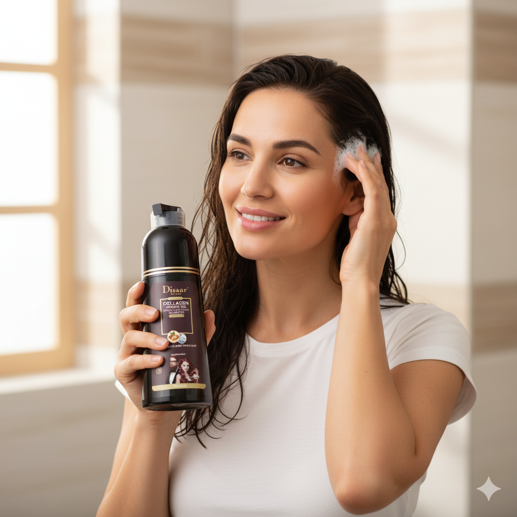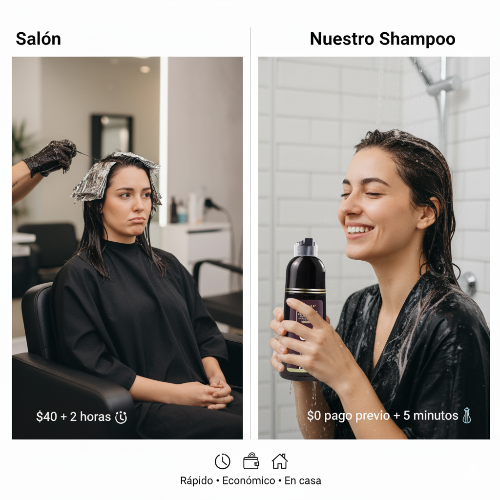 “No creía que un shampoo pudiera cubrir las canas, pero este realmente funciona. En la segunda semana ya noté el cambio y mi cabello quedó suave, sin irritación. Muy práctico, lo uso mientras me baño.”