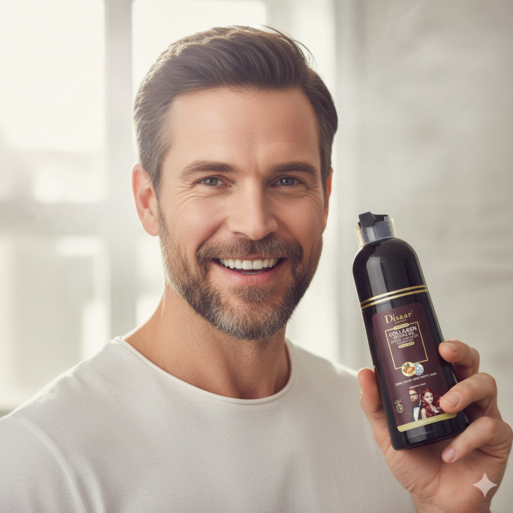 Cada hebra gris puede hacerte ver más cansado o mayor de lo que realmente eres. Este shampoo recupera tu color natural mientras nutre tu cabello — para que vuelvas a verte con energía y confianza desde el primer uso.