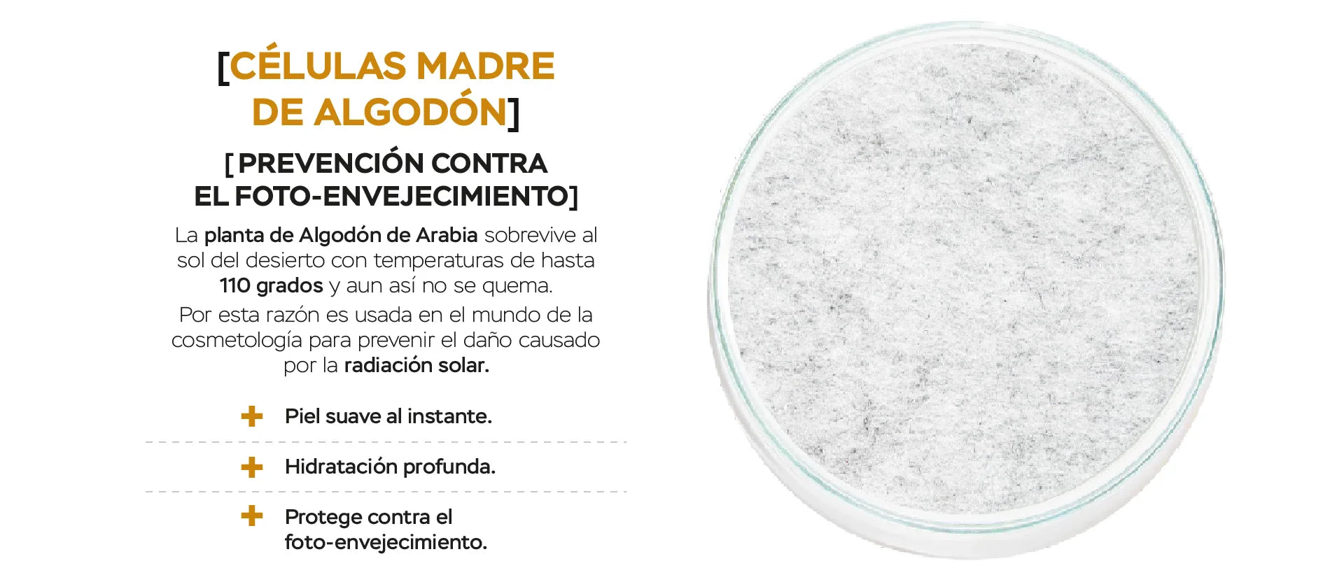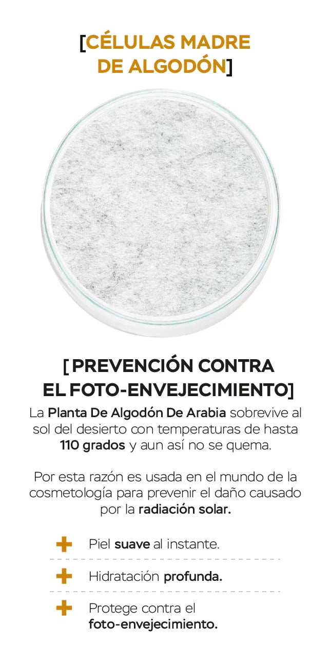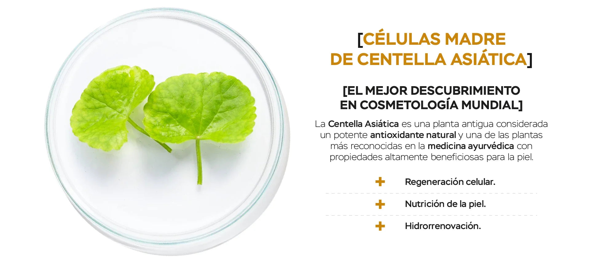 La células madre de centella asiática promueven la hidratación, firmeza y elasticidad.