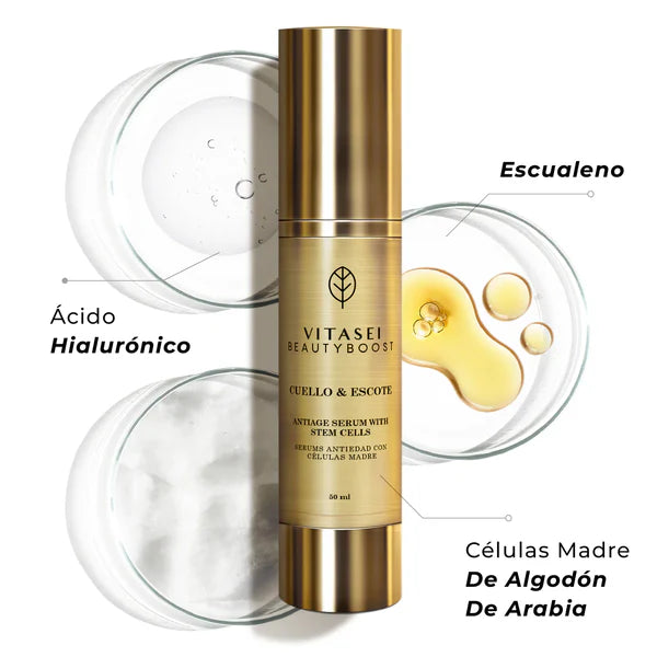 Nuestro serum especializado está formulado para ofrecer una protección y cuidado integral a la piel del cuello y escote. Sus ingredientes innovadores ayudan a mejorar la apariencia de esta zona olvidada, dejándola suave y tersa.