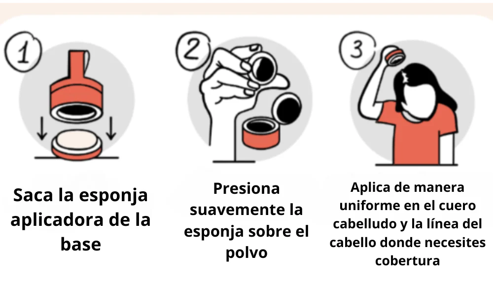 3. Aplica de manera uniforme: Usa la esponja para aplicar el polvo en el cuero cabelludo o en la línea del cabello donde necesites cobertura, asegurándote de difuminarlo bien para un acabado natural.